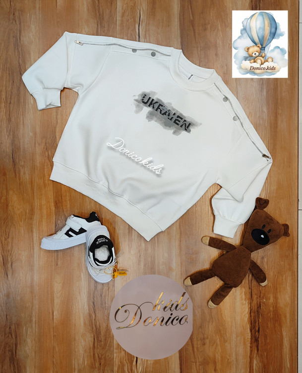 دورس پسرونه اسپورت فشن تک رنگ سفید مدل یقه گرد و ساده با طرح نوشته ذغالی و نوار زیپ و دکمه نما روی شانه های دورس جنس نخ پنبه با کیفیت مدل لش و مناسب تینیجرای عزیز از ۸ سال تا ۱۷ سال