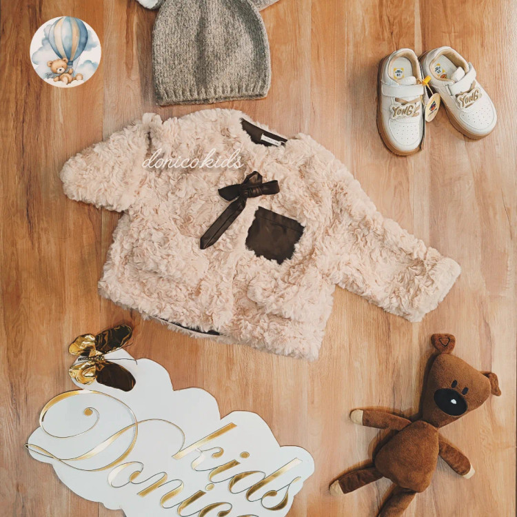 پالتو پوست تدی دخترونه گرم و نرم تک رنگ و فوق العاده شیک و با کیفیت داخل پوستی و جیب و پاپیون چرم قهوه ای رنگ دارای سه جیب یقه گرد و پوشیده مخصوص عید و مهمونی و برا دختر خانومای چیتان پیتانی فانتزی مناسب ۲ تا ۷ سال سایزبندی ۸۰_۱۲۰