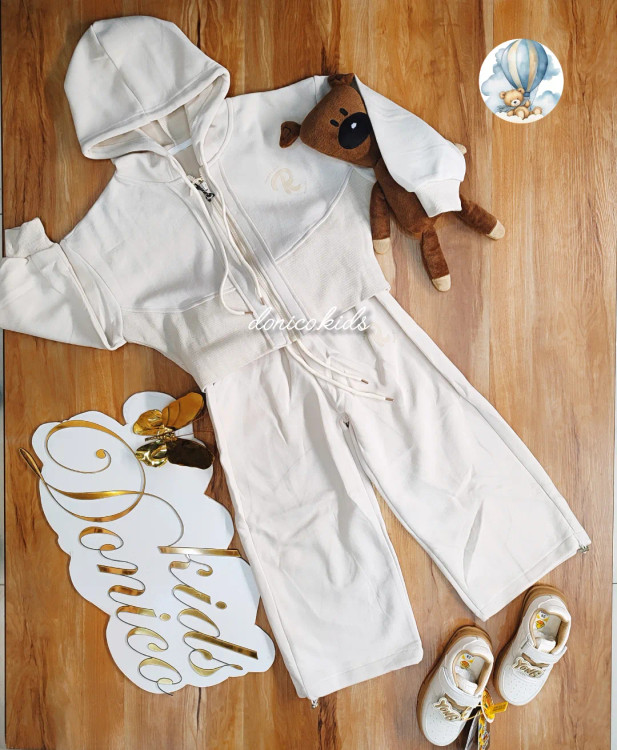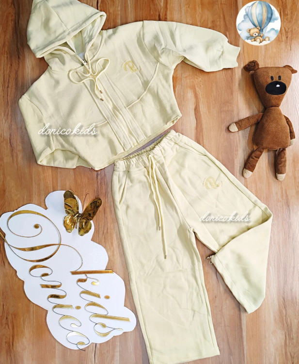 سوئیشرت کلاه دار و تمام زیپ کمر پهن کش فرم و آستین کیمنو و شلوار دخترونه نیم بگ گت دار با جنس نخ پنبه فوق العاده با کیفیت بسیار خوش دوخت و خوش فرم در دو رنگ کرم و لیمویی زیبا مناسب: ۵ تا ۱۱ سال سایزبندی ۱۱۰_۱۵۰