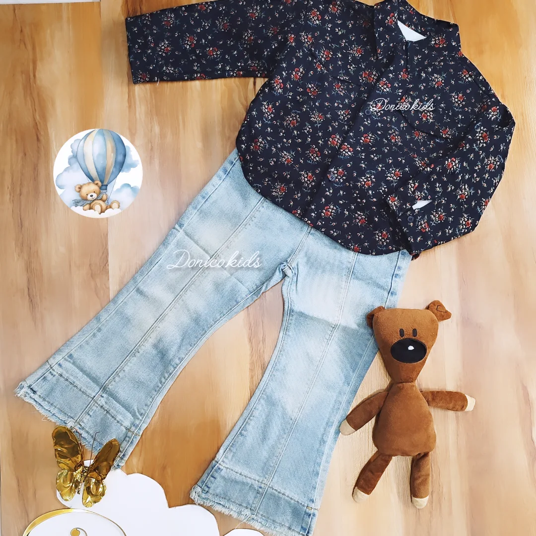 سورمه ای با گل های قرمز