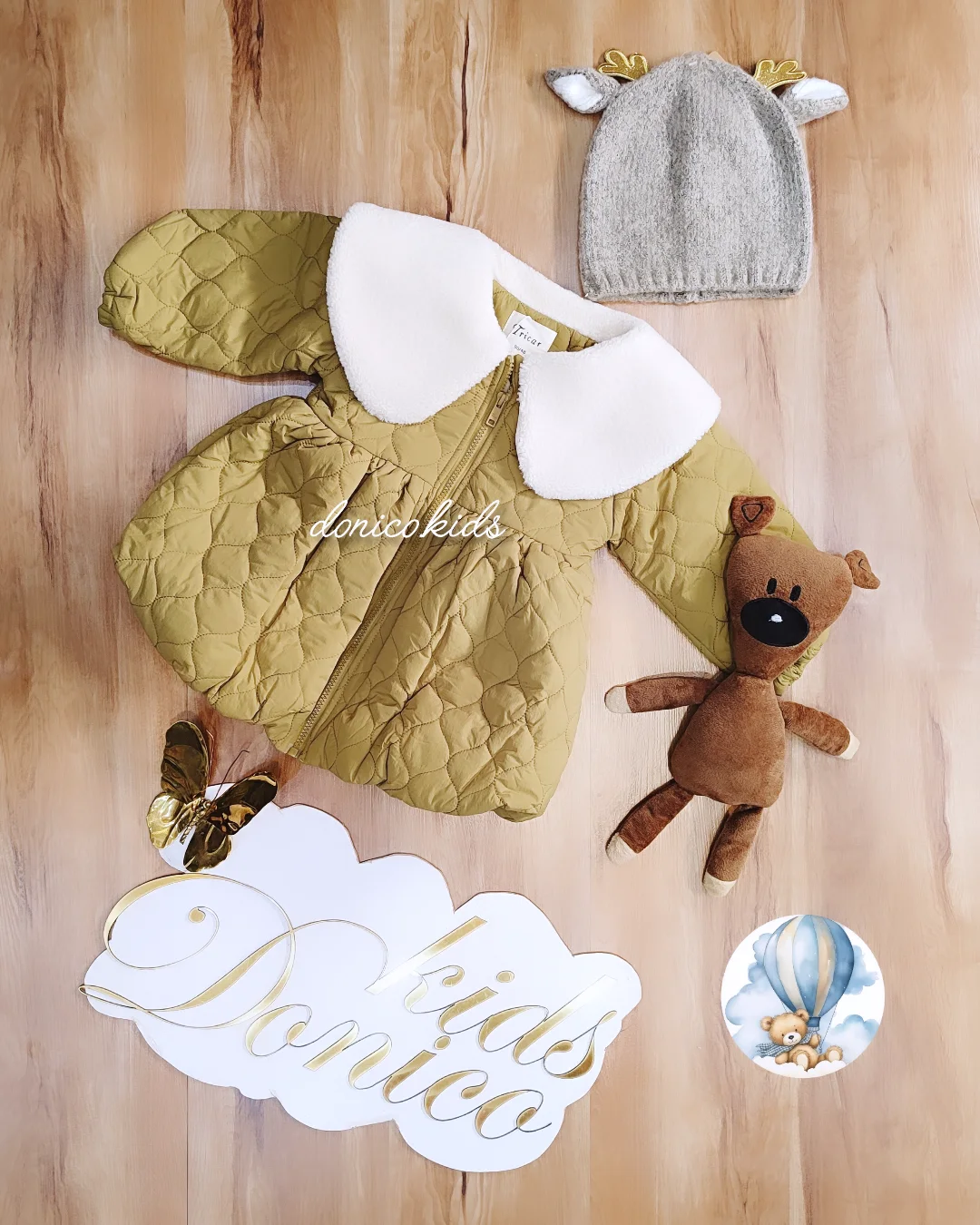 جنس کاپشنی نخ پنبه کل کار چرخ دوزی شده مدل فون قارچی یقه عروسکی خز دار، داخل کار خز دار و تمام زیپ، سر آستین ها و پایین کار کش دار، کار بسیار با کیفیت و ضد حساسیت و شیک. مناسب ۲_۷ سال