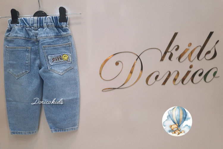 شلوار جین مام فیت اسپورت ایموجی آبی روشن