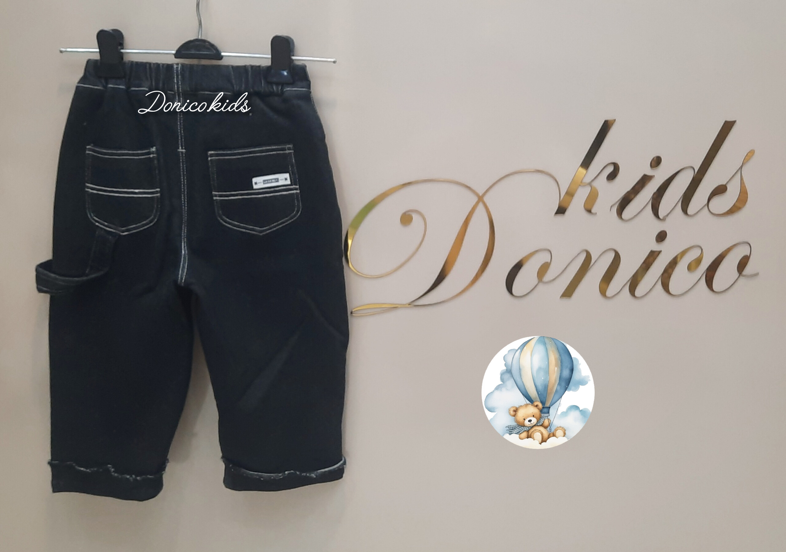 شلوار جین مام فیت ذغالی اسپورت با کمر کشی و لبه انتهای ساق پای کار دوبل چهار جیب و با دوخت نخ سفی بصورت لاینری زیبا و خوش دوخت و با کیفیت تو کرکی و جذاب ماسب ۲ تا ۷ سال سایزبندی ۹۰_۱۳۰